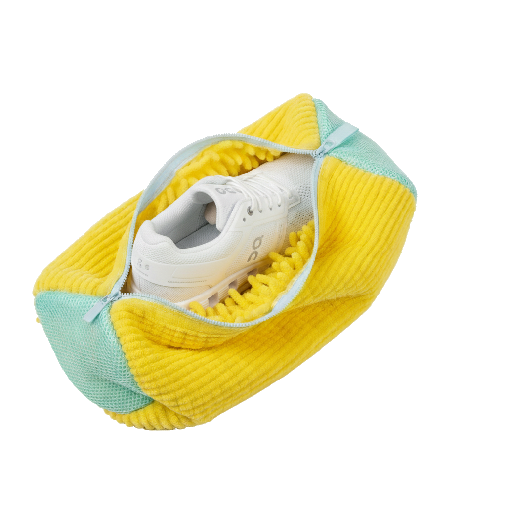 Put your dirty shoes in the bag, zip it up, and toss it in the washing machine. It cleans your shoes and keeps your washer safe.